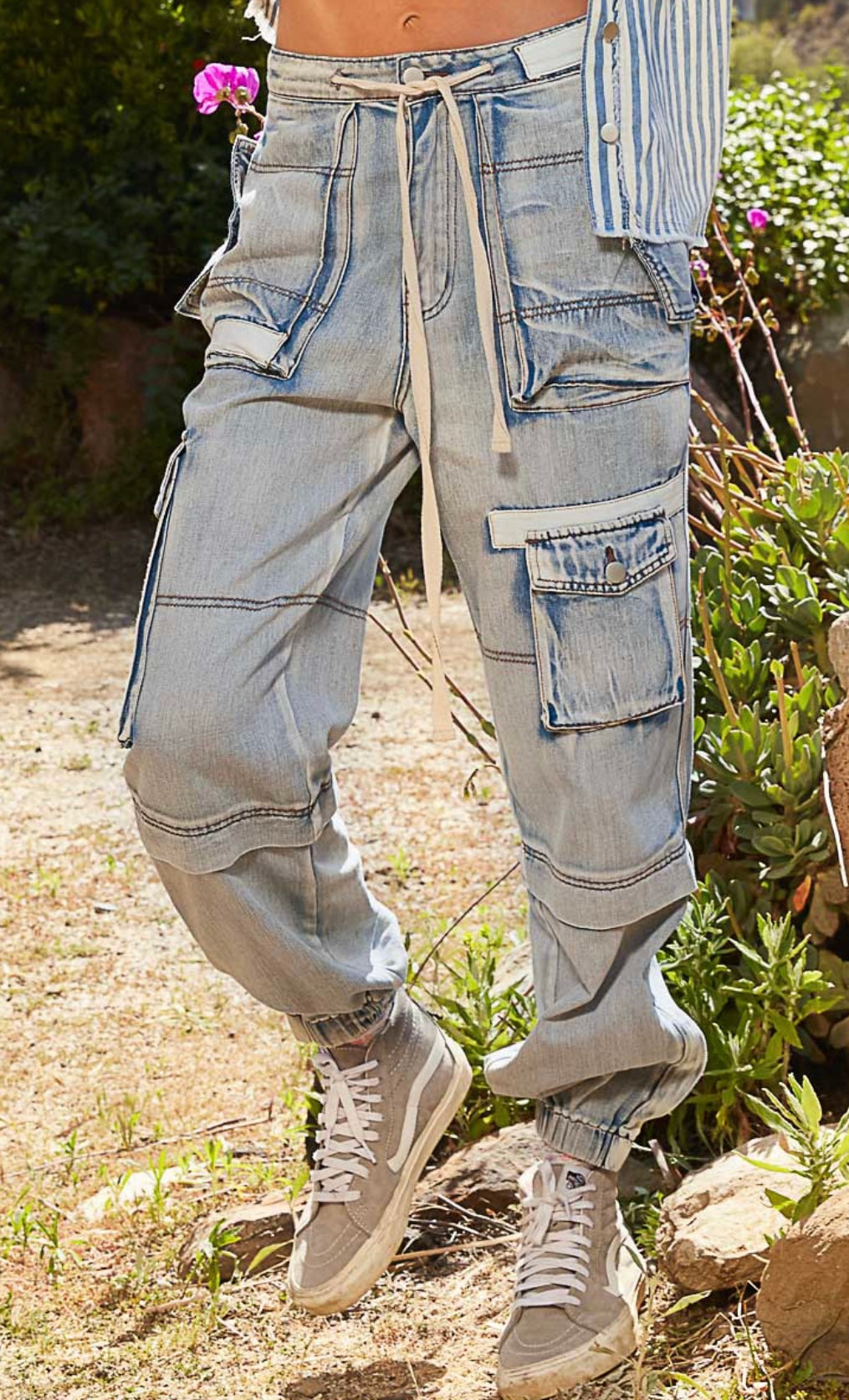 Baggy cargo pants with utility pockets